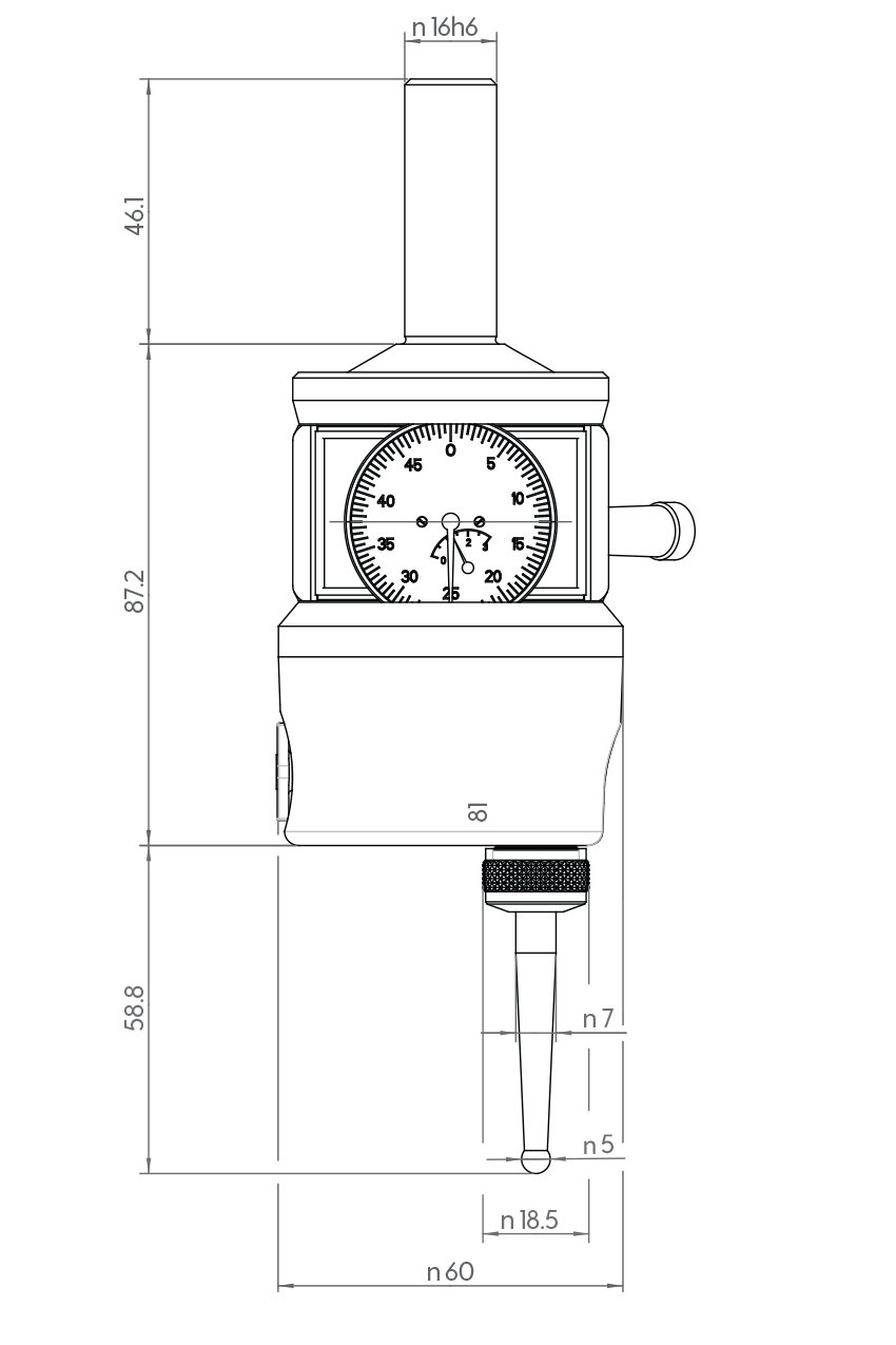 inklusive Taster, Einspannschaft Ø 16mm Ø 2-125 / Ø 0-125 / 0,005mm