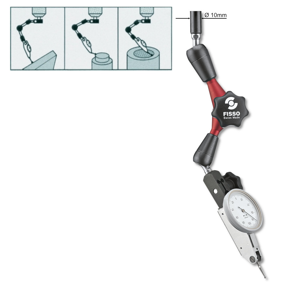 Fisso Gelenk-Arm Strato XS-13 f+C zum Ausmitteln von Bohrungen, Aufnahmeschaft: Ø 10 mm L=40mm, Aktionsradius: 201 mm, Aufnahmebohrung: 8 mm / Schwalbenschwanzführung
